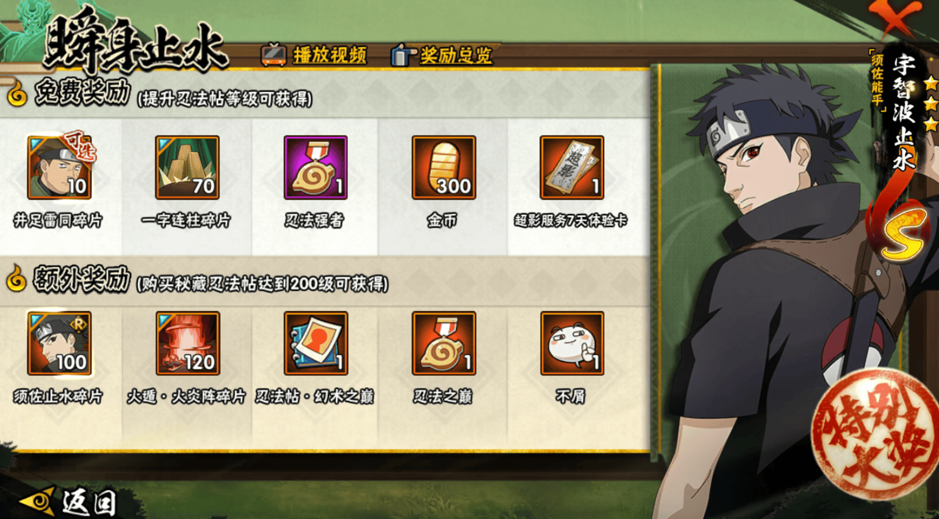 顺便再来说一下须佐止水的招募优先级,如果你是一个正常的月卡玩家,在当前赛季招募忍法帖S忍是一个比较推荐的方式。周期正常,消耗点券也正常,唯一影响的可能就是其他的一些点券忍者没办法第一时间入手。一个忍法帖S忍和附加的奖励跟一个点券A忍对比,肯定是前者更有性价比。我并不是说不可以在后面的忍法帖慢慢补,只是这样会有较长的周期,有时候可能还没体验到巅峰版本就已经削弱了。