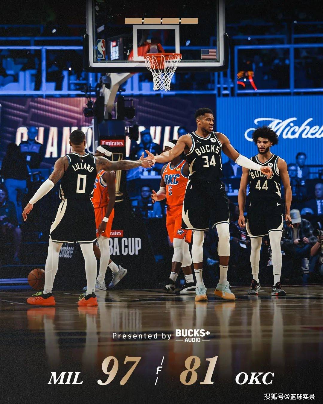NBA杯决赛,雄鹿97-81大胜雷霆。