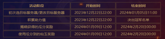 线上入围赛的时间安排为2023年12月23日-12月24日,各大服务器将随机匹配对手战斗。每场比赛积分为胜3败1,无平局设置,弃权或中途逃跑不得分。5轮比赛后,最终积分排名前8的队伍将晋级八强,若积分相同则随机排序(报名队伍中总经验最高的五人的总经验更高的队伍,排名靠前的几率更大)。