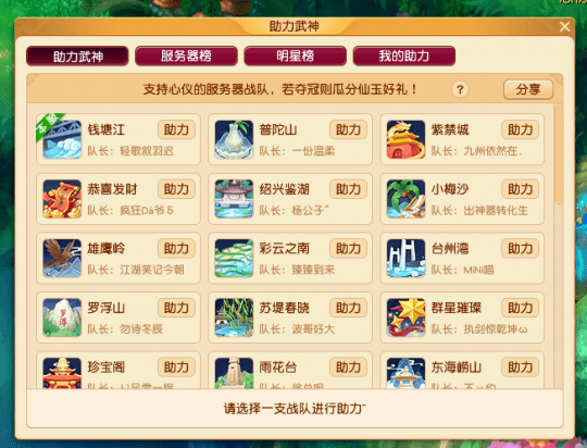 除此之外,瓜分的奖励同助力值有关,如果支持的服务器夺冠,助力值高的小伙伴就可以瓜分高额奖励。就2023年武神坛成绩来说,曲阜孔庙、紫禁城、珍宝阁、西栅老街、钓鱼岛等服务器表现良好,整体硬件实力也相当不错,大家可以根据自身理解进行选择。
