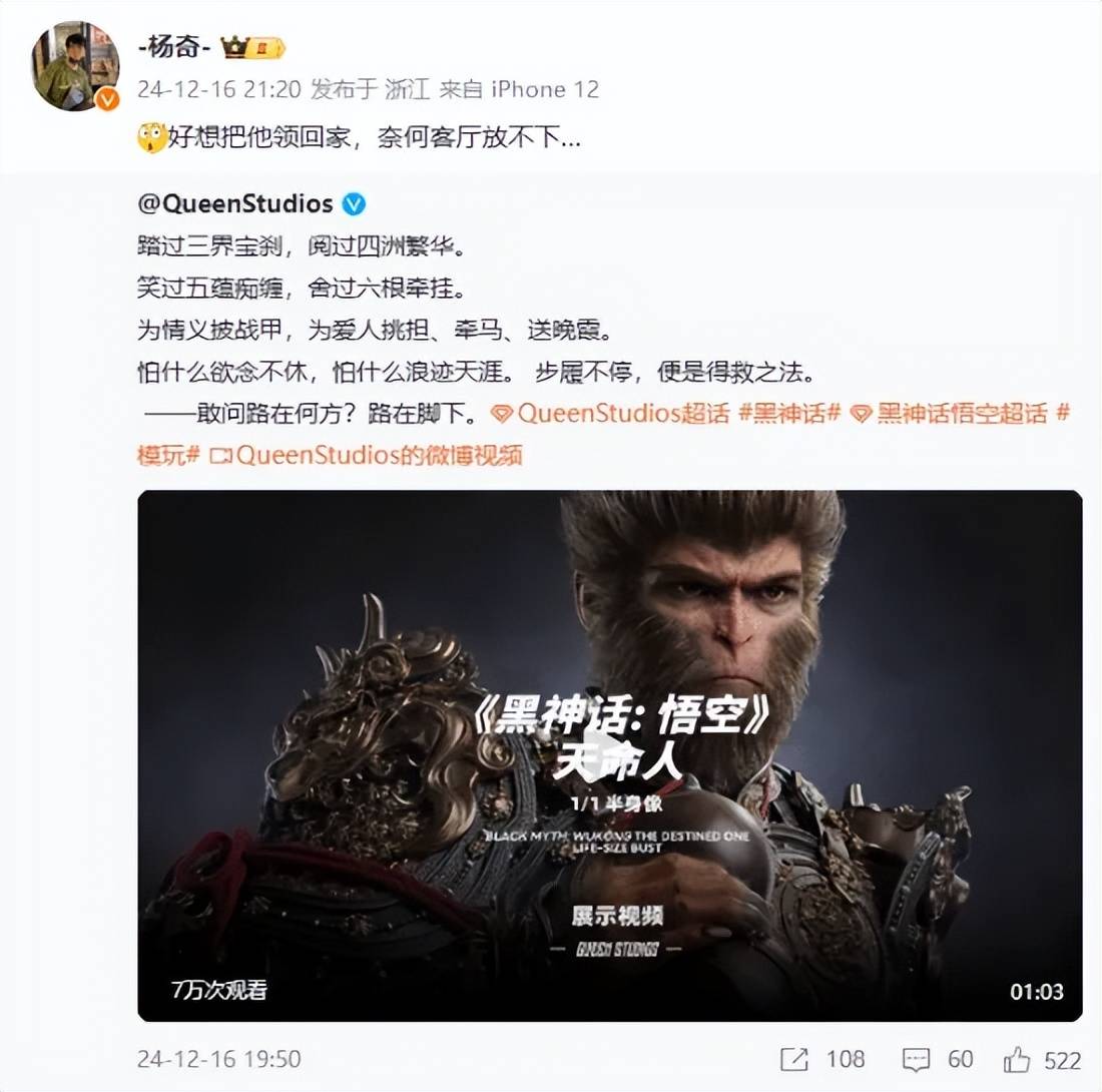 有网友呼吁杨奇赶紧买一个,他笑称家里客厅放不下。