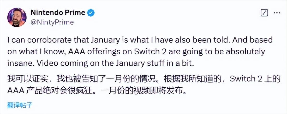 此外也有推主表示任天堂将会在2025年1月公布Switch2,分析机构则表示任天堂之所以谨慎,是想要避免Wiiu那样的失败。
