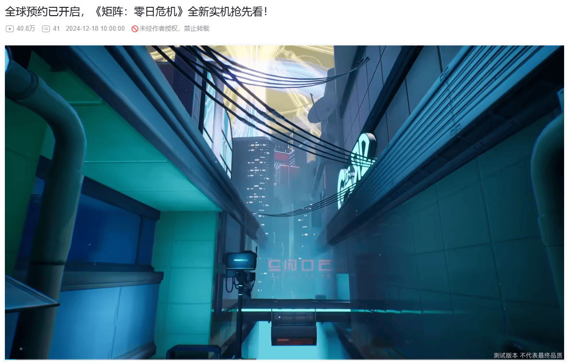 《矩阵:零日危机》已将市场瞄准全球,在海内外都吸引了大批喜欢肉鸽射击玩家的关注,早些时候,游戏曾开启过先锋测试,尽管是开发中的版本,依旧凭借扎实的质量、优良的画面和常玩常新的乐趣,收获了广大玩家的认可,有参与过测试的玩家在测试结束后倍感怅然若失,纷纷留言询问游戏的上线时间。
