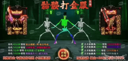 目前来看“骷髅打金服”已成为一种“概念性”的宣传,裂变出各种子分类,搜索“骷髅打金服”会出现几十上百种不同的类传奇页游,包括“鬼服传奇”“骷髅传奇”等,但这些游戏在玩法上与传统传奇页游并无本质区别,骷髅只是作为引流的存在。