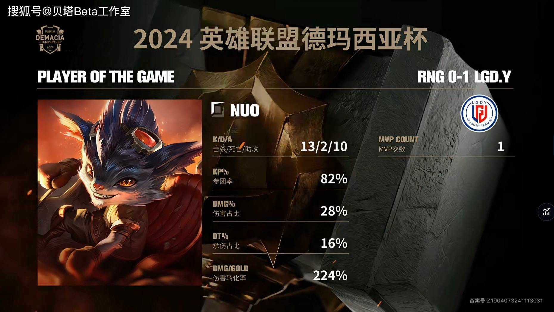 RNG在德玛西亚杯小组赛中,以3连败的战绩,惨遭光速淘汰。关键是这次RNG派出的是明年的全新阵容,结果在德杯打不过LDL战队,还被IG当成人机暴打,感觉明年的RNG已经烂了。
