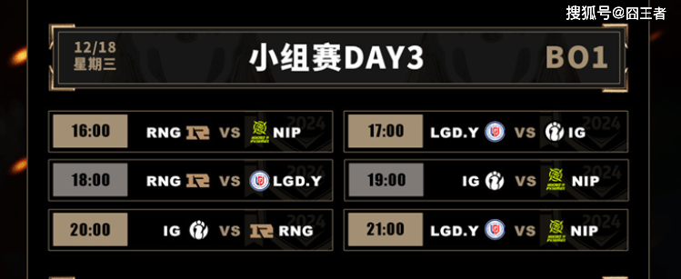 在率先结束的A,B两组的比赛中,TT和EDG晋级淘汰赛。接下来的C组的比赛中,将在12月18日举行,在率先结束的比赛中,NIP轻取RNG,先拔头筹;iG大乱斗取胜LGD.Y;接下来,就看RNG对阵LGD.Y的表现了,赛场上见分晓。