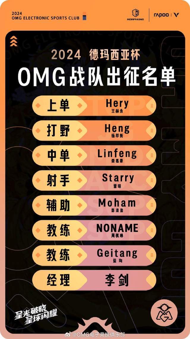 新赛季OMG阵容启用了他们的青训中单Linfeng,在2024赛季他曾短暂顶替Angel出任过一段时间的首发位置,表现相当亮眼。上路Hery和打野Heng的组合在LPL中下游队伍里算是比较有竞争力。可能会使新赛季OMG成绩出现波动的因素,可能还是在于下路Starry和韩援Moham之间的适配度和化学反应。