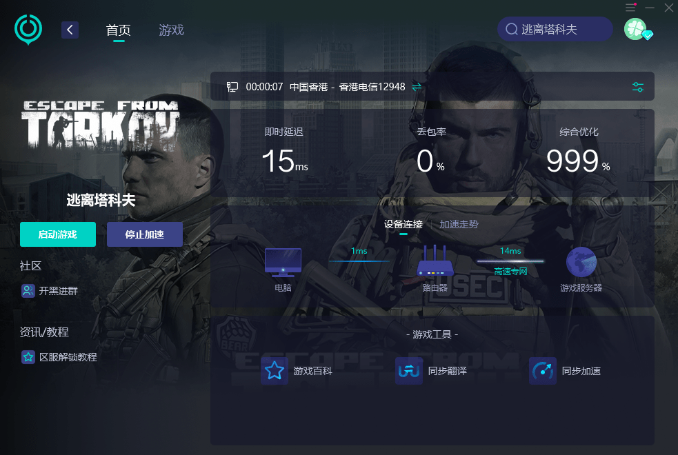 第2步:点击即可获得稳定网络连接,畅玩《逃离塔科夫:竞技场》