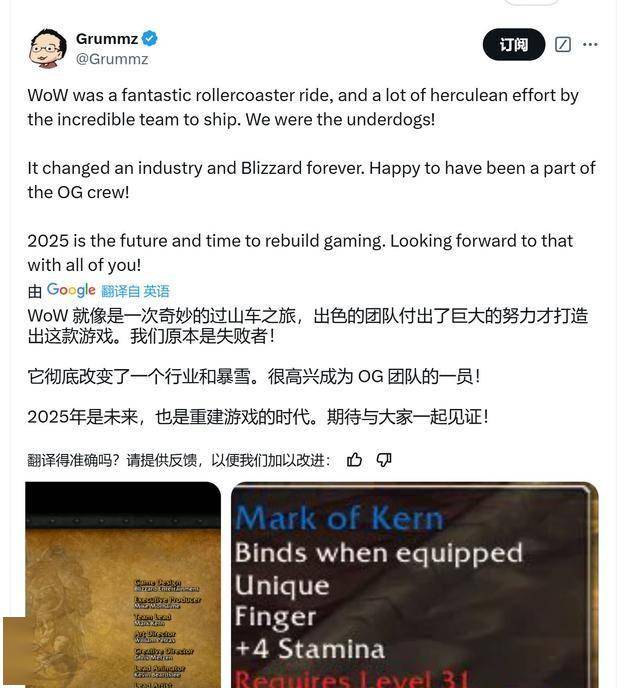 对于玩家的怀疑,Gummz继续发帖,晒出一张图片,显示Mark Kern确实是《魔兽世界》的团队领导(team lead),甚至游戏中还有以他名字命名的装备。