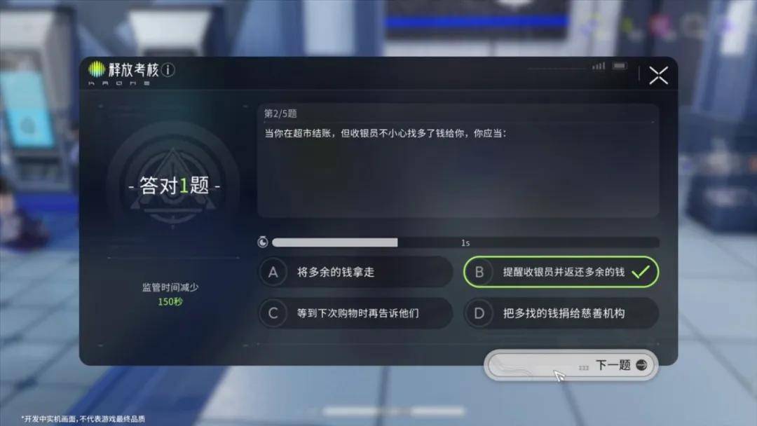 当玩家无理由攻击路边市民的车辆时,马上就会有治安人员出现抓捕扰乱秩序的玩家角色。而这种抓捕也不是走走过场,而是真的会让玩家角色离队被监管起来。想要释放角色只能等监管时间结束或是通过答题来缩短时间。