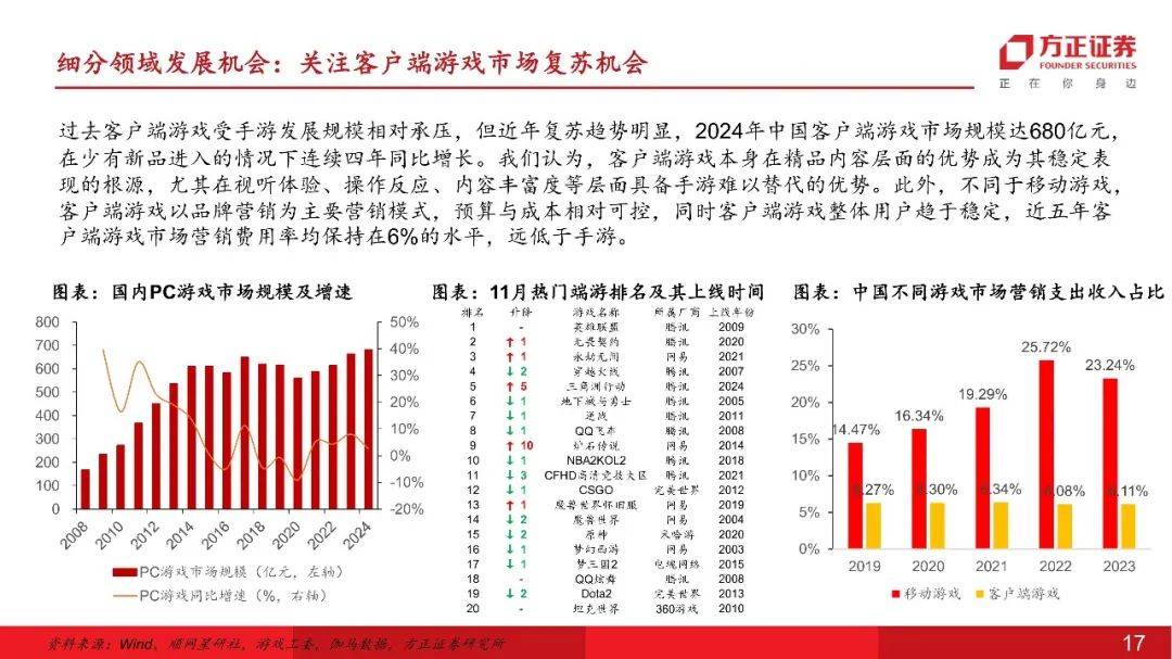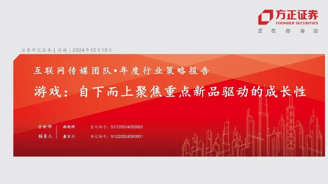 本文来自方正证券研究所于2024年12月15日发布的报告《游戏年度策略报告:自下而上聚焦重点新品驱动的成长性》,欲了解具体内容,请阅读报告原文。