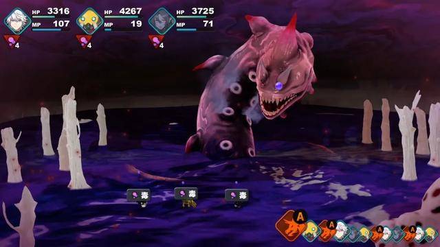 最让人感到满意的部分是BOSS战的设计,不仅仅是数值上的对轰,更需要去观察战斗机制并做出相应的对策。比如流程中出现的雷鸟BOSS会召唤杂兵为自己充电,如果不及时清理杂兵的话,充电完毕的雷鸟会使用闪电风暴进行全体攻击的同时,让主角团被吹向悬崖方向。之后在支线任务中也有出现这个BOSS,但一开场就在悬崖边上,只要发动了就等于游戏结束,需要把握好节奏与输出。在混沌世界还有一个叫做混沌蛇鸡龙的BOSS,在第二阶段会发动全场诅咒状态,并使用即死攻击。对此则需要提前做好相应的措施,比如配好免疫诅咒与即死的宝石、活用挑衅与迷雾技能来避免攻击等等。虽然具有一定的难度,但也非常高的挑战价值。摸清规律并做好相应准备来接招、并最终战胜对方后,也将带来非同一般的成就感。