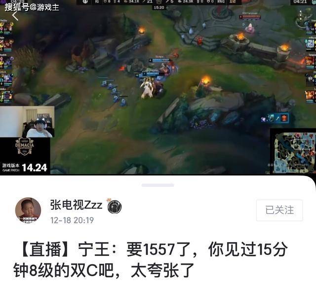 宁王和姿态等人在直播的时候也是评价了这场比赛,所有人都认为这场比赛要比之前的T1战队1557还要困难,当时的1557是地图的普通版本,现在增加了镀层之后,前期推防御塔的速度是很慢的,就是这样的条件下,还依旧只慢了半分钟的时间,只能说这场比赛的节奏更快。宁王更是调侃大家,真的不知道15分钟双c8级的强度吗?看了这个事情之后,阿水的粉丝坐不住了,甚至站出来表示那场比赛难道不是阿水德莱文的饮血剑打出来的吗?和其他人有什么关系?