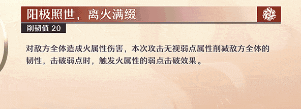 忘归人的大招则是在对敌方全体造成火属性伤害的同时,还会无视弱点属性削弱全体敌方的削韧,在击破敌人弱点时,触发火属性的弱点击破效果。