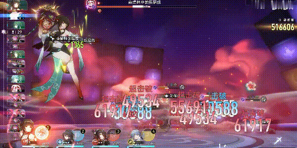 比如当你用流萤击破敌方弱点时,你可以看到场上一共出现在了3个超击破伤害,它们分别是流萤、忘归人和同谐主触发的伤害数字。