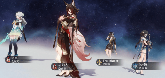 如果你有2魂流萤、阮·梅、灵砂,那更加推荐至少抽个0+0,忘归人自带的破韧机制,保证了击破队在失去同谐主后,不会出现缺口。