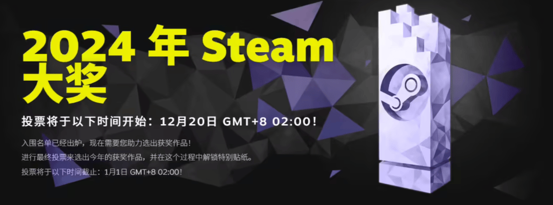 小编从Steam官方获悉,2024年Steam大奖入围名单现已正式出炉,将于北京时间12月20日凌晨2时开放投票,2025年1月1日凌晨 2 时结束投票并揭晓获奖名单。