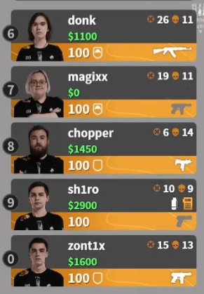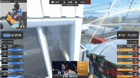 这些战术无不体现出了对donk的恐惧和尊重。首先要避免与之正面交锋,就以这次上海Major举例,即便是在donk队友全灭、FaZe全员存活的1V5大优势残局,FaZe也没有一名队员敢主动探头和donk对枪。