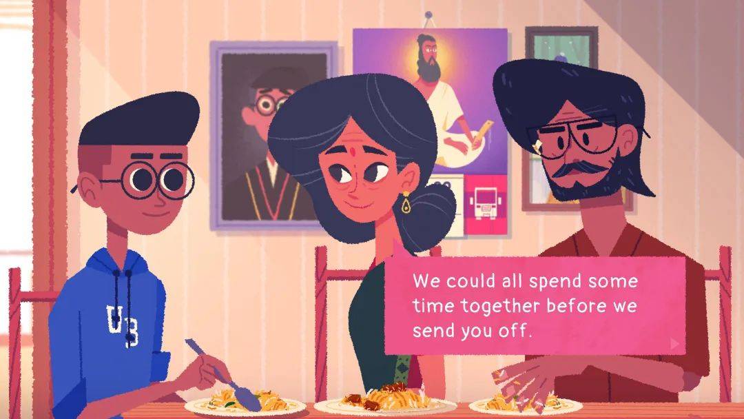 相较于上述作品,2024 年 3 月获得 IGF 大奖的《薇妮巴一家》(Venba,2023)因聚焦于日常生活,反倒显得有些另类。玩家以烹饪为线索,旁观着薇妮巴一家三口几十年间的生活碎片:这个来自南印度、在 80 年代迁居加拿大的移民家庭,时常因生计苦恼,需要面对身份危机,在相互扶持成长的同时,也难免经历丧偶别离。主人公家庭背景或许稍有特别,但归根结底,这只是一款相对平淡的烹饪游戏,正如同他们的日常生活,不过柴米油盐、一日三餐而已。