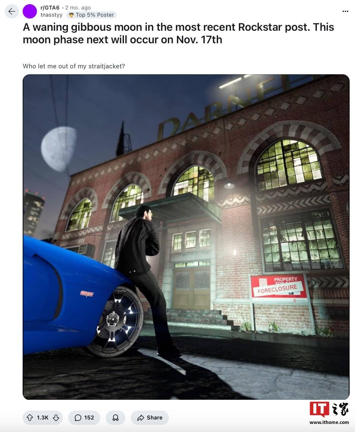 不过这一月象理论可谓“疯狂”,Reddit 平台许多回复对此均对此进行调侃。而参考IT之家 12 月 2 日报道,当时 Rockstar 项目协调员 Ash 在 X 平台发帖称 R 星员工早就知道网友们各种“分析理论”,认为这些理论令人“忍俊不禁”。
