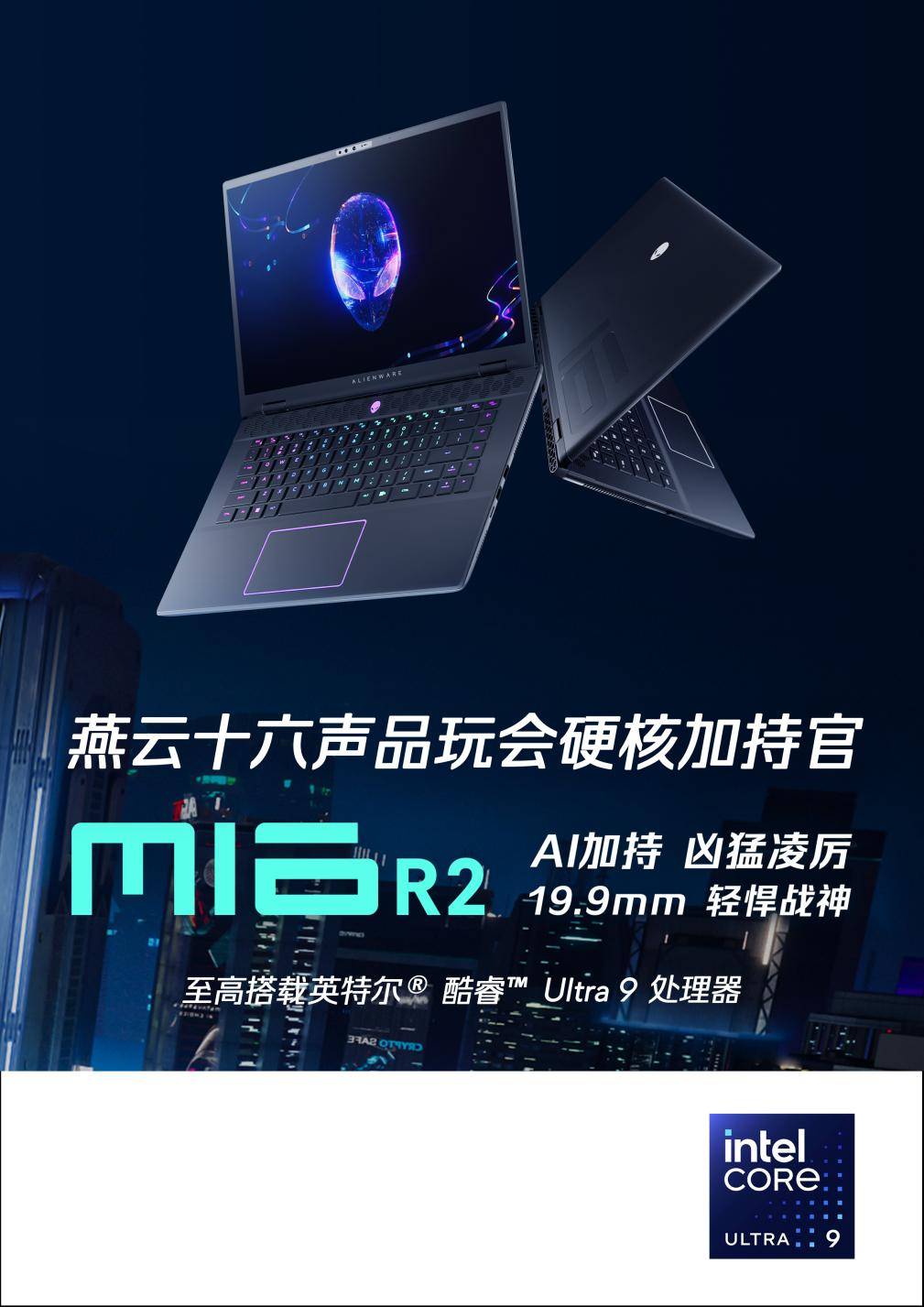 ALIENWARE m16 R2,至高搭载英特尔® 酷睿™ Ultra 9处理器的5.1GHz睿频频率,为玩家在虚拟江湖中的每一次战斗提供超凡性能。Fn+F1高性能模式,一键释放CPU和GPU的全部潜力,为玩家在虚拟江湖中的每一次挑战提供强劲动力,Cryo-Tech™散热架构,配备2高速风扇,确保设备在高负荷运行下依然稳定。