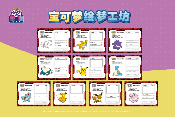 活动形式:选择自己喜欢的宝可梦卡牌画纸或者空白画纸,现场随机就坐创作与宝可梦相关的画作