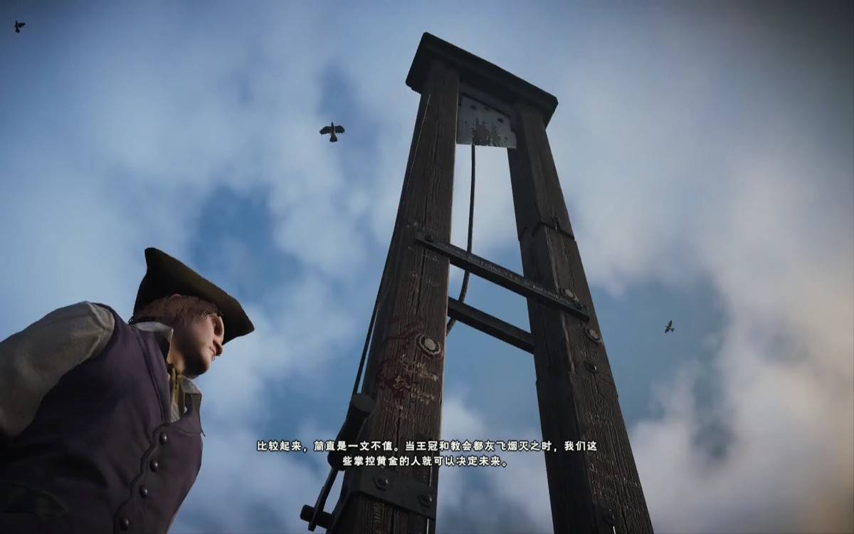 以法国大革命为题材创作的《刺客信条:大革命》,就在本次的冬促计划中。而无论是游戏的CG还是剧情,断头台都是一个戏份相当重的元素。无他,法国最后一位皇帝路易十六,就是以这种方式完成“谢幕演出”的。
