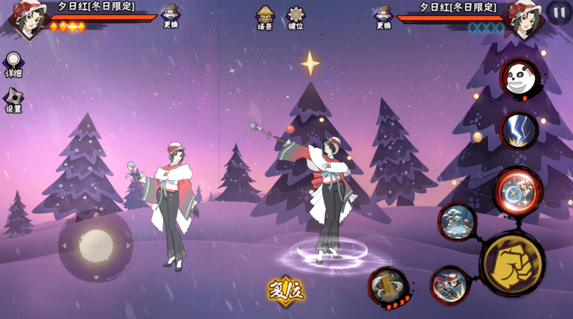 冬日限定夕日红的双技能基本都是X轴,一技能短按是幻象,偶尔可以墙角保护自己,持续时间也不算短。长按的无敌位移有明显的后摇,不要老是想着用这个技能穿对方的攻击,除非你是有提前预判才行。二技能会有一个非常明显的结印动作,再加上主要是X轴,对方甚至是可以看到你结印,还能顺着Y轴躲过去。所以,只看两个技能,冬日限定夕日红在起手和反手方面都没有什么太大的优势。二技能在板边朝着墙角释放的特殊效果有一定的身后判定,也基本没有了结印的前摇,本体有短暂无敌,这样的二技能倒是还行。