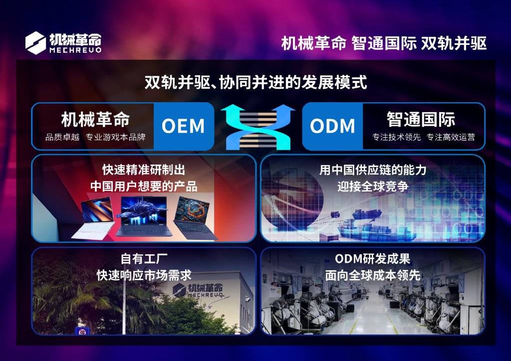 在机械革命的发展历程中,双轨并驱模式起到了至关重要的作用。所谓双轨并驱,就是ODM(原始设计制造商)和OEM(原始设备制造商)两种业务模式并行发展。