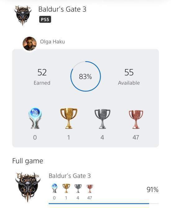 作为一位资深的Coser,Frau_Haku在社交媒体上分享了她的PS5游戏奖杯墙,其中不乏《博德之门3》的相关成就。她自豪地表示,自己已经接近白金等级,这是对她长时间投入和努力的最好证明。这份坚持和热爱,不仅让她在Coser圈中赢得了尊重,也让更多玩家看到了她对《博德之门3》的深厚情感。