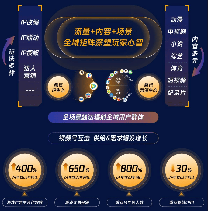 在2024下半年,能明显看到腾讯广告生态当中出现两个新的选择机会:微信视频号互选生态的突围;IP联动、IP植入营销打法的规格变化。