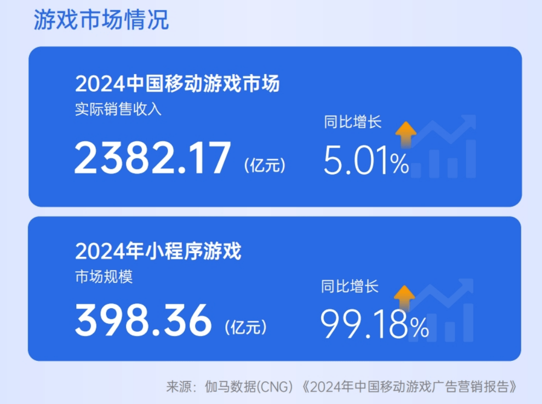 近几年能明显感受到,游戏行业不仅产品竞争逐年升温,游戏延伸出来的各个领域,都在慢慢向红海转变,其中最典型的就是广告营销领域。峰会提及,2024年移动游戏收入增幅约5%,游戏用户规模为6.74亿,也持续表现出放缓趋势。
