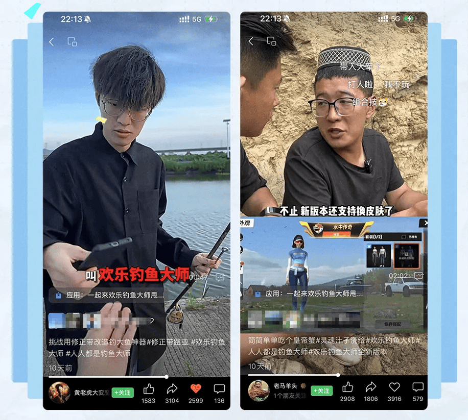 比如《欢乐钓鱼大师》根据游戏玩法属性,选择了美食和创意手工的达人赛道,再根据达人账号用户画像,精选了与游戏用户高度贴合的达人合作,最后营造了十分接地气的休闲娱乐氛围。最终,《欢乐钓鱼大师》投放组件 点击率达到3%,平均CPM为4元,激活付费率、激活成本都优于行业均值。