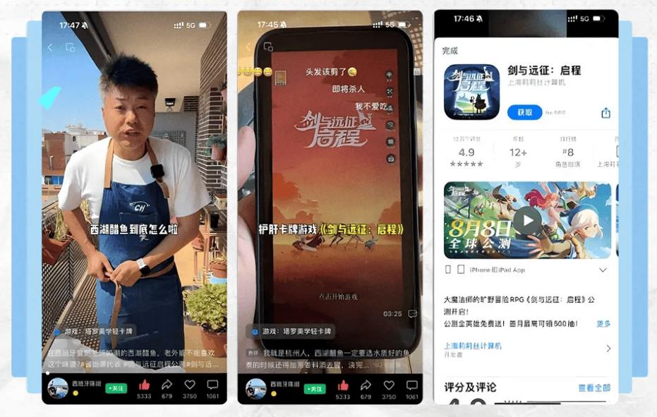 同样,《剑与远征:启程》也通过与视频号美食达人的合作,用游戏+美食文化的传播策略,实现了 完播率17%、互动率1.5%的高曝光效果,最终把美食文化和游戏作品结合起来,快速覆盖了大量用户。
