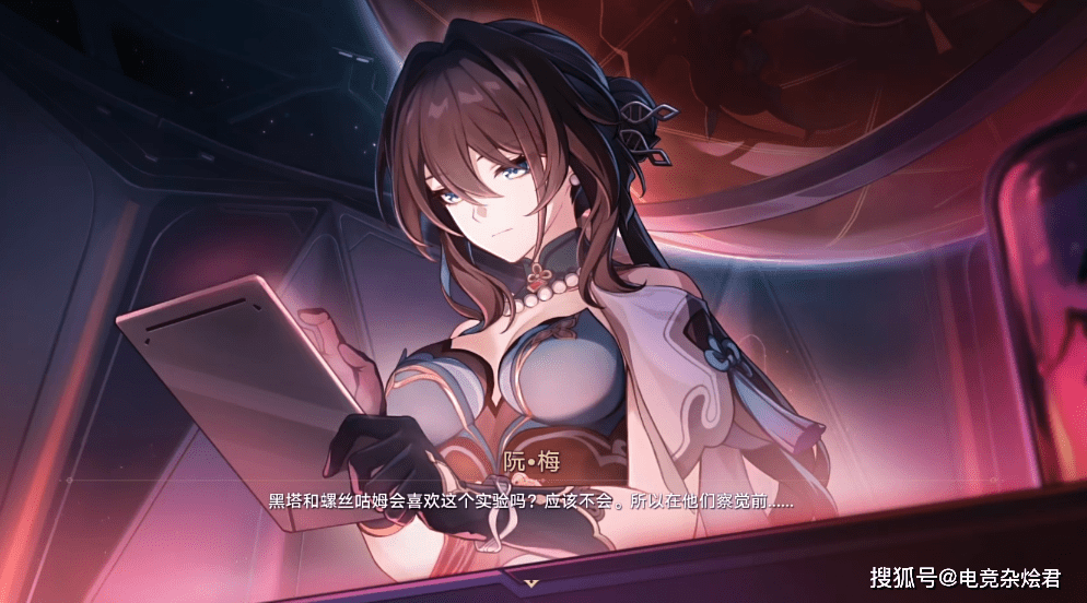 除了玩已经有的梗,在本次剧情里,星穹铁道制作组还用剧情一定程度淡化了“坏女人”阮·梅的严肃感。在剧情里,这位疯狂科学家为了达成自己的研究,可谓是煞费心机了。一方面背着自己的合作伙伴偷偷在研究里加“料”,另一方面还一口一个“亲爱的”蛊惑咱们玩家帮她办事情。