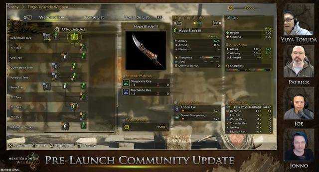 德田优也还订正了之前在媒体试玩采访中的一个错误,关于NPC猎人设置不破坏伤口的选项,不会作为首日补丁更新内容。首日补丁的设置是玩家打出伤口后,NPC猎人不会立刻破坏伤口,而是在一段时间后使用集中攻击。发送信号后,NPC猎人和艾露猫会聚集到玩家身边。