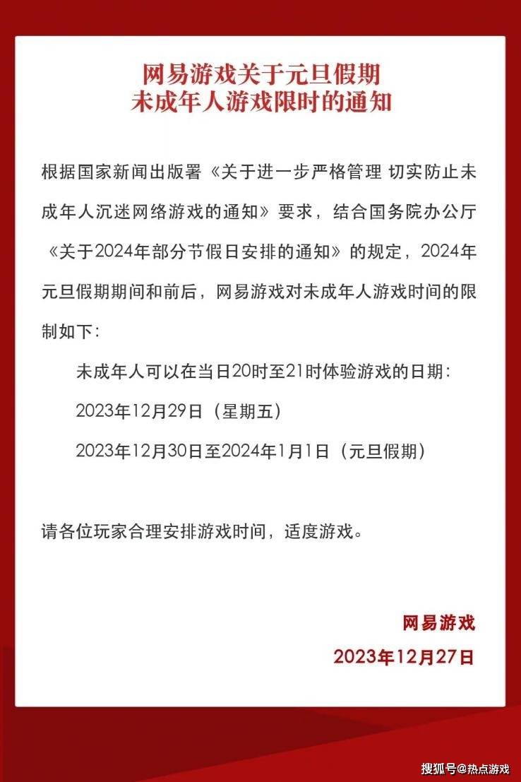 随着元旦的临近,为切实履行国家新闻出版署的要求,结合国务院办公厅的规定,《蛋仔派对》在2024年元旦假期期间及前后对未成年人的游戏时间进行限制,以促进营造健康游戏环境。同时,《蛋仔派对》也呼吁各位家长和监护人密切关注并引导未成年玩家合理安排游戏时间。
