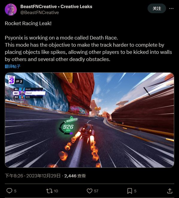 粉丝们推测“死亡竞速”模式可能会在 2024 年初推出。此前开发商已经宣布了《火箭竞速》第一季有着宏大的计划。