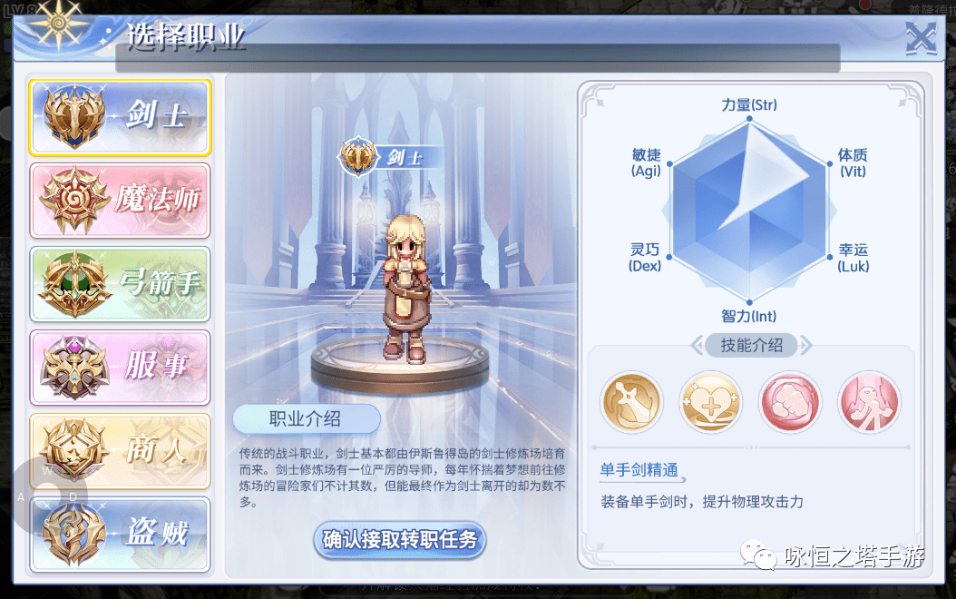 首先,剑士作为力量型的代表,拥有强大的物理攻击力和生存能力。他们挥舞着沉重的巨剑,冲锋在战场上,不畏艰险。剑士的属性以力量和耐力为主,他们可以承受大量的伤害,并且在战斗中越战越勇。在进阶之后,剑士可以成为骑士或骑士领主,拥有更高的防御力和生命值,成为团队中不可或缺的肉盾。