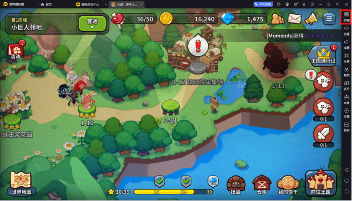 打开饼干人:王国电脑版,点击右侧栏位中的【按键】。