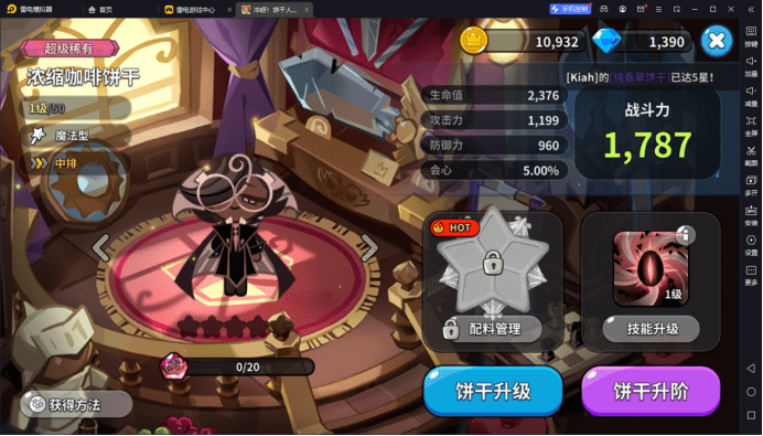 2.浓缩咖啡饼干:强度偏向中上,非常适合新手玩家使用,其技能是萃取浓缩咖啡,是一个范围性输出技能,造成超高的持续伤害,推图、刷本的效果非常好,尤其是打小怪关卡,能帮助玩家节省不少时间,因此他非常适合开荒。