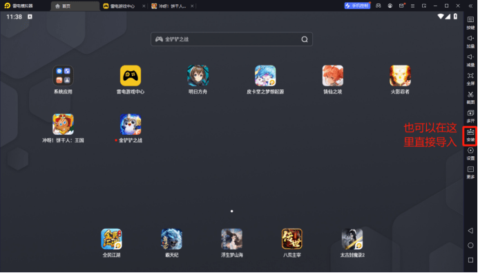还可以直接在首页导入游戏APK文件。这两种方法都可以快速体验到饼干人:王国电脑版~
