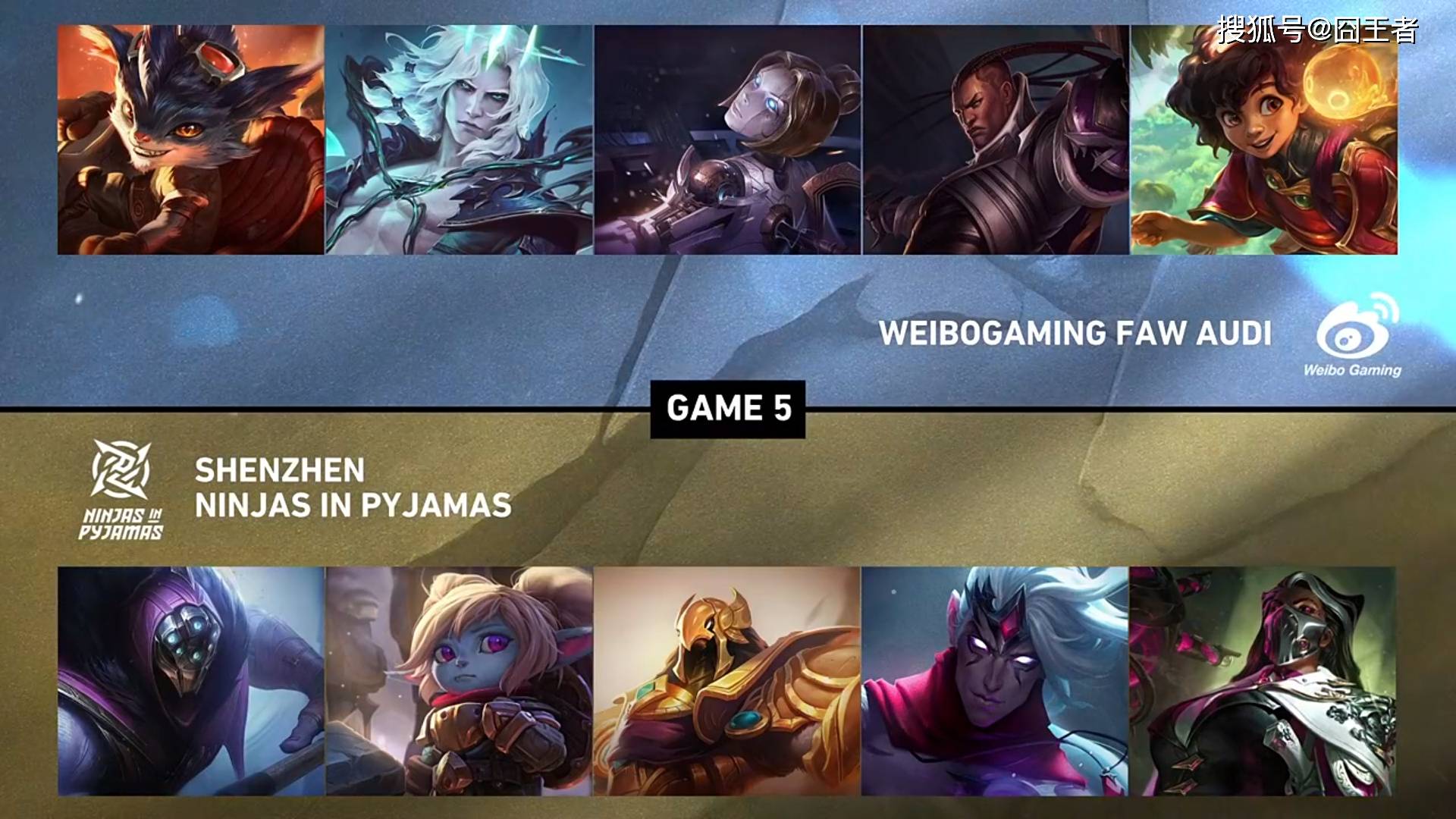 决胜局,WBG蓝色方,禁用滑板鞋,梦魇,妮蔻,泰坦,洛,选用兰博、破败之王、发条、卢锡安、明烛;NIP红色方,禁用艾希,妖姬,盲僧,阿卡丽,赵信,选用武器大师、波比、沙皇、韦鲁斯、烈娜塔