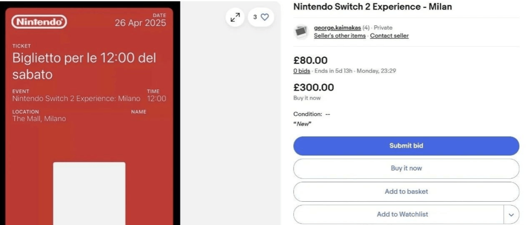 本周早些时候,有不少玩家已陆续收到任天堂的Switch 2线下试玩资格通知邮件。不过,现在这些活动门票正在被“黄牛”疯炒,并以高价在网上出售。