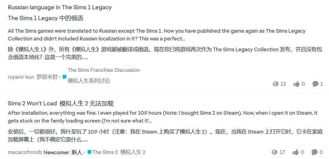 截至IT之家发文,模拟人生官方论坛上充斥着用户关于遇到崩溃、文件删除、食物和家具消失、Direct X 冲突、游戏保存问题以及游戏无法启动等吐槽。