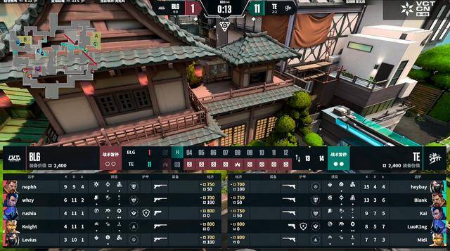 下半场手枪局BLG团战打B,TE回防二打二Biank与Midi各打一个拿到赛点。第14回合伴随着Midi三杀,TE打出11连胜一举赢下霓虹町。