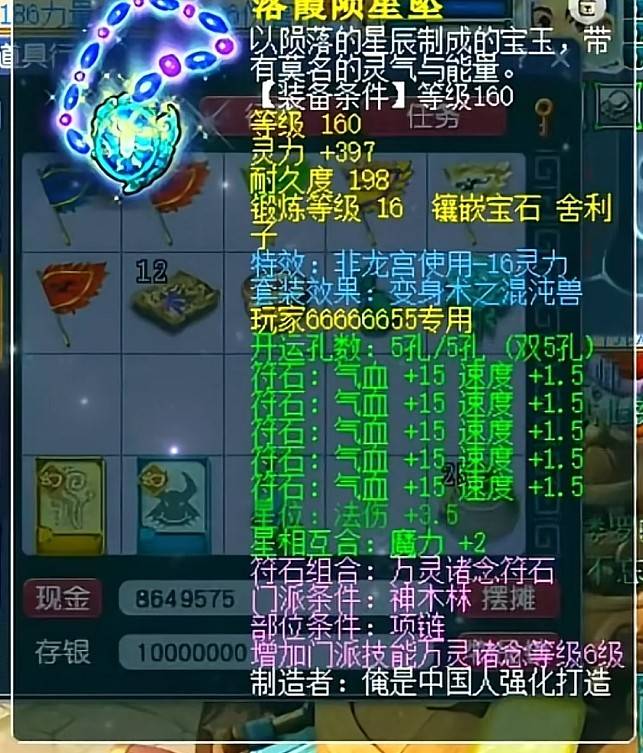 无独有偶,曲阜的这条项链与当今的龙宫第一神链,属性完全相同。知情人士预估,这条项链的价值在300万左右。谁能拿下它,就能直接登上梦幻西游第一龙宫的宝座了。