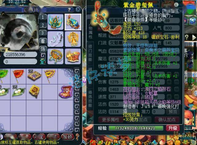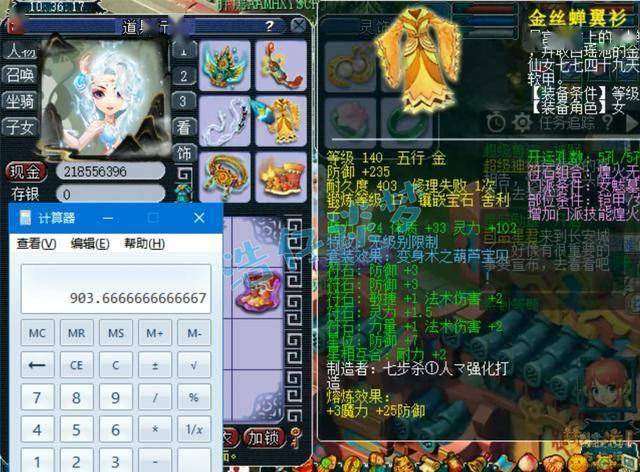 140级无级别葫芦宝贝套女衣,熔炼后魔体双加60,打了17锻舍利子。
