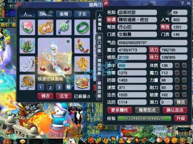 好了,这个69级女魃墓展示完毕,说他是69法系的天花板一点都不为过,6件无级别装备,搭配4件超级简易灵饰,这种配置很多人应该是第一次见吧?宝宝都是紧跟潮流,带了6只金蝉蜕壳宝宝,各位眼馋吗?
