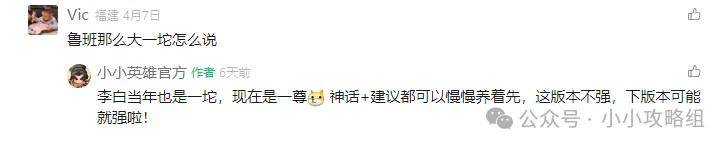 5、最后,小编今天在找周年庆消息的时候,发现了一个关于鲁班的消息,官方有说明:现版本虽然现在表现不佳,但说不定下个版本就强了。也就是说未来的某个版本鲁班刚需,而且之前出鲁班的时候官方就说召唤流的侠客会越来越多,所以慢慢养着吧。堪比李白,李白刚出就挺不错的,后面李逍遥一来就没用,沉淀了几个版本,现在有个皮肤又行了~